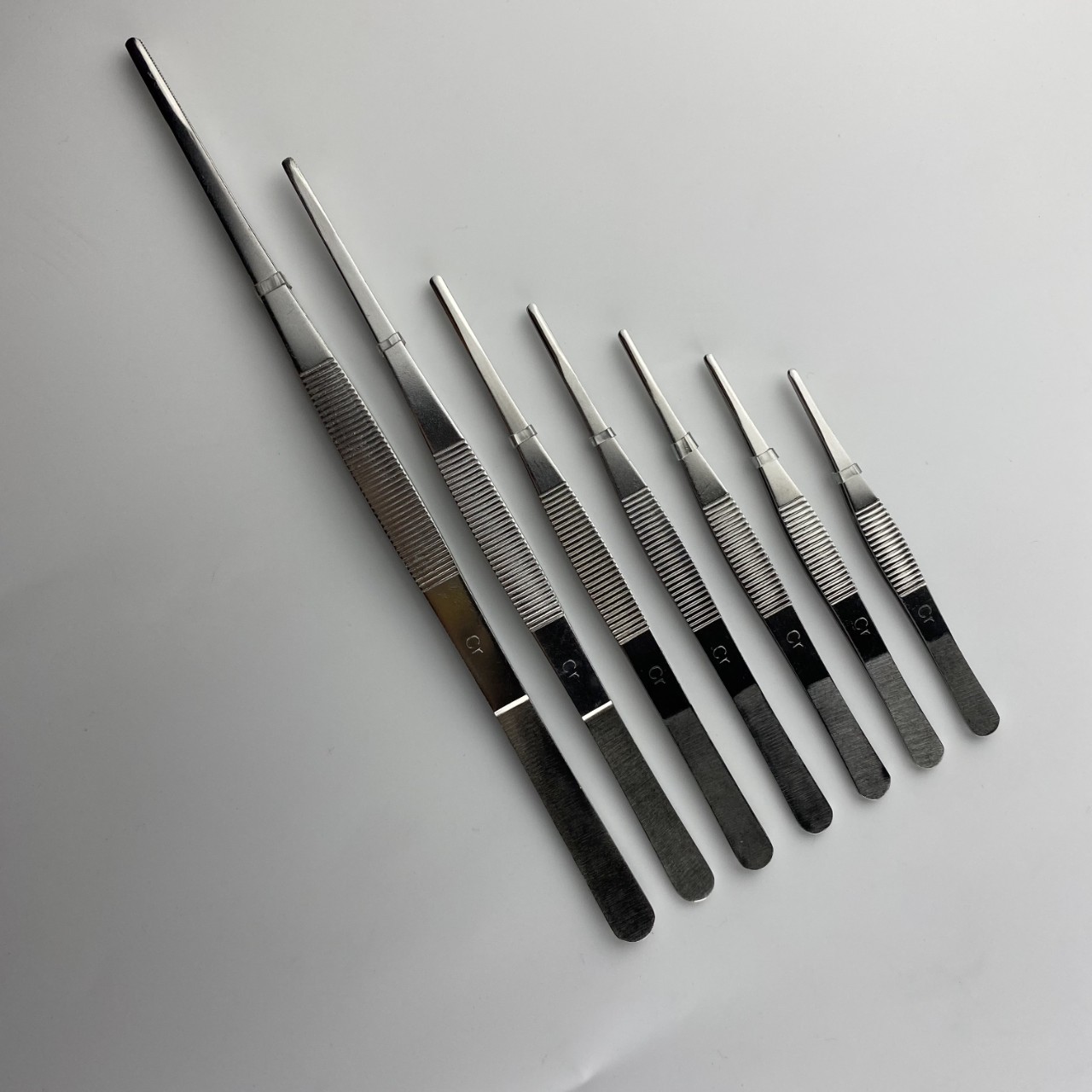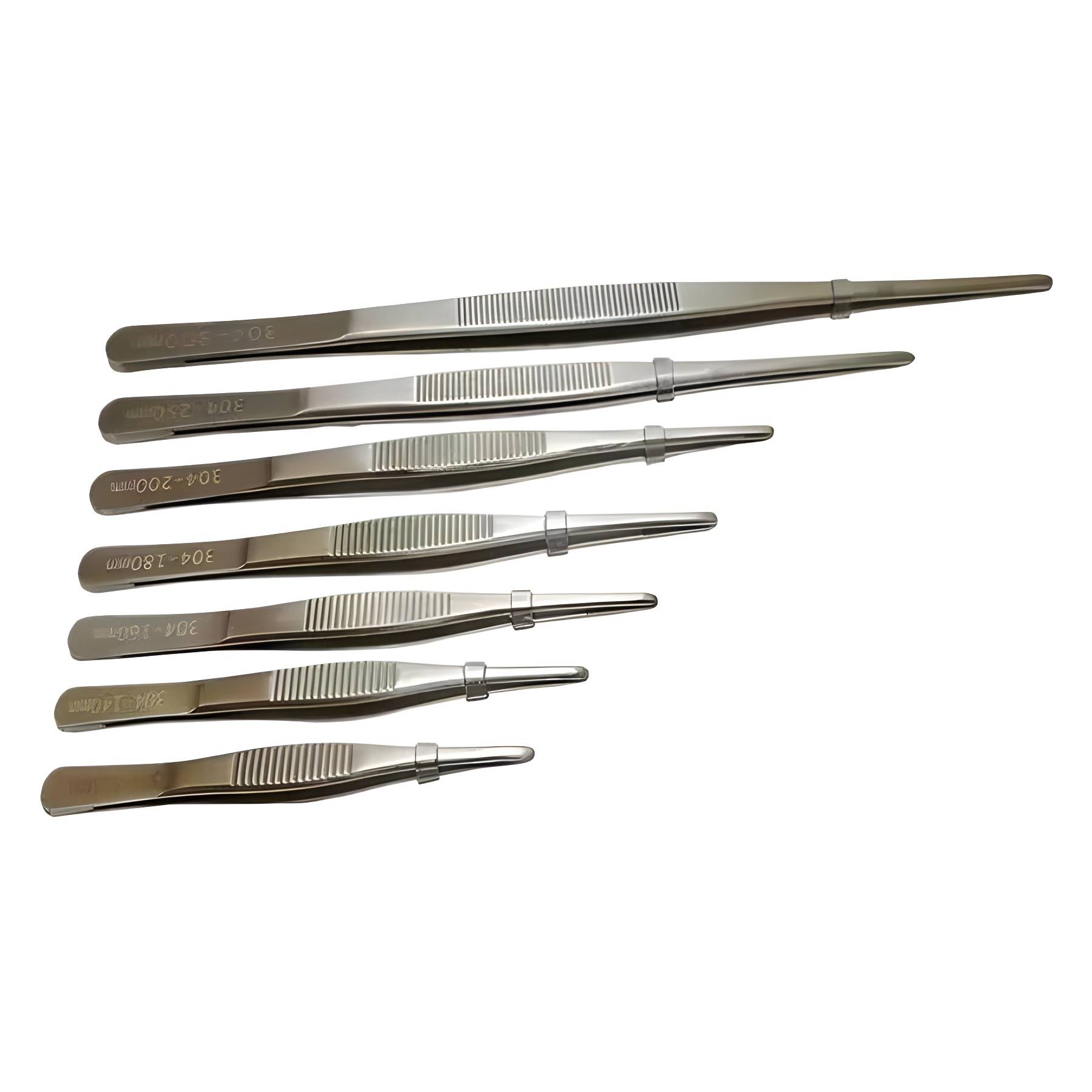 Medisinske pinsett er et vanlig medisinsk utstyr, hovedsakelig brukt i kliniske avdelinger for påkledningsendringer og andre operasjoner, og brukes mye i klinisk praksis. Hovedmaterialet er laget av rustfritt stål, med en enkel struktur og et bredt utvalg av typer, for eksempel vevs pinsett, kirurgiske pinsett, anatomiske pinsett, dressende pinsett, plastpinsett, tannpinsett, pistolformede pinsett osv.; De har forskjellige former, inkludert rette pinsett, buede pinsett, flate pinsett, spisse pinsett, etc.