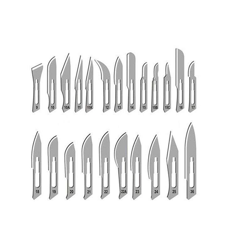 1) Kirurgisk bladstørrelse: 9#, 10#, 11#, 12#, 13#, 14#, 15#, 16#, 18#, 19#, 20#, 21#, 22#, 23#, 24#, 25#, 26#, 27#, 34#, 36#, en rekke typer er tilgjengelige for å møte en rekke scenarier.